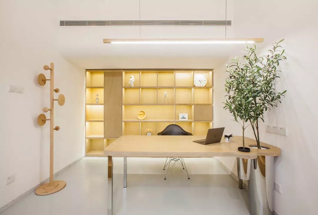該項目位于上海市閔行區(qū)七寶萬科國際;我們希望工作室足夠的輕松、溫性、創(chuàng)意,于是通過顯性與隱性的符號對我們的目標進行構(gòu)建;空間用了大量溫暖的木色,并組成木質(zhì)的空間體塊,這些體塊以整個白色空間為背景,進行功能與空間節(jié)奏上的構(gòu)筑: