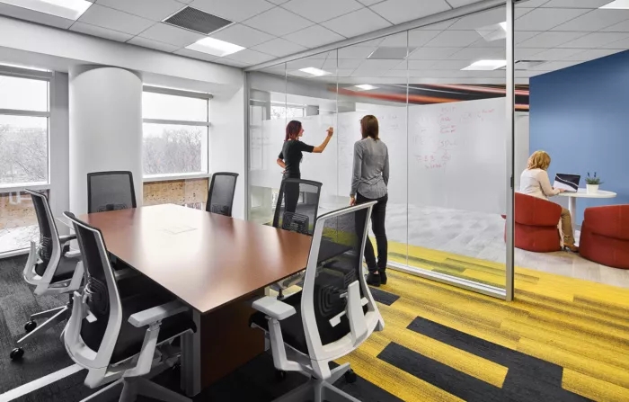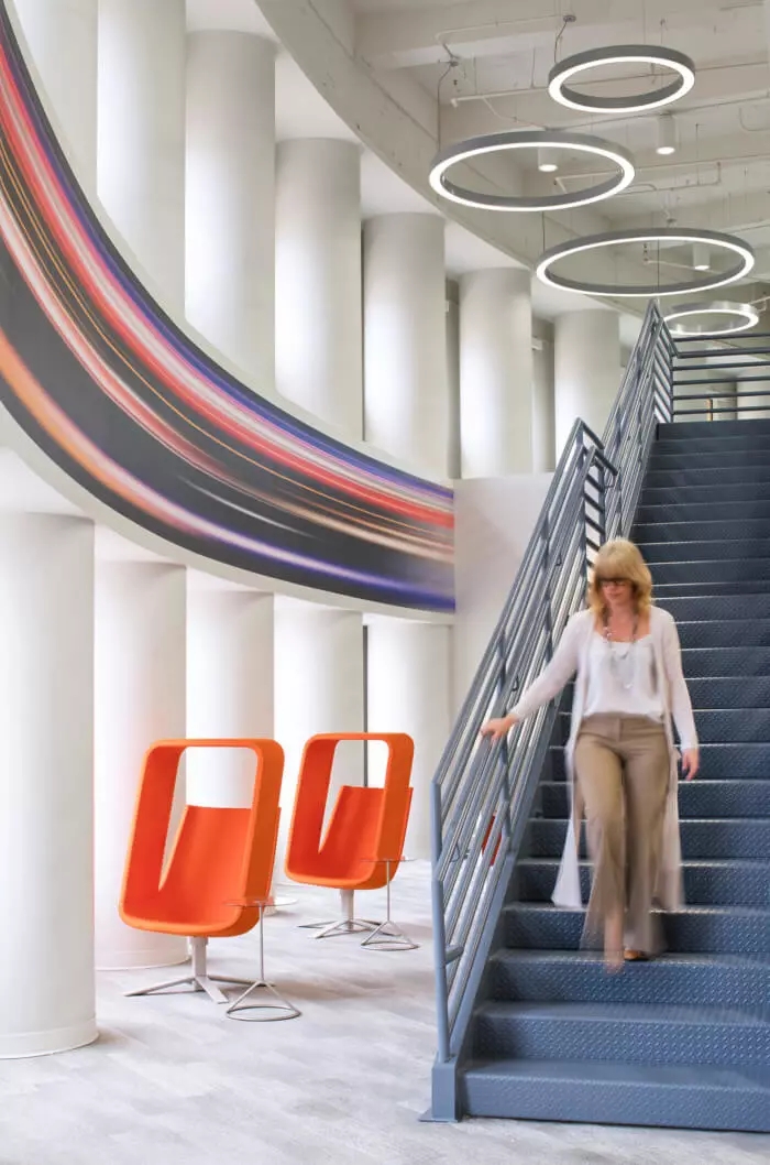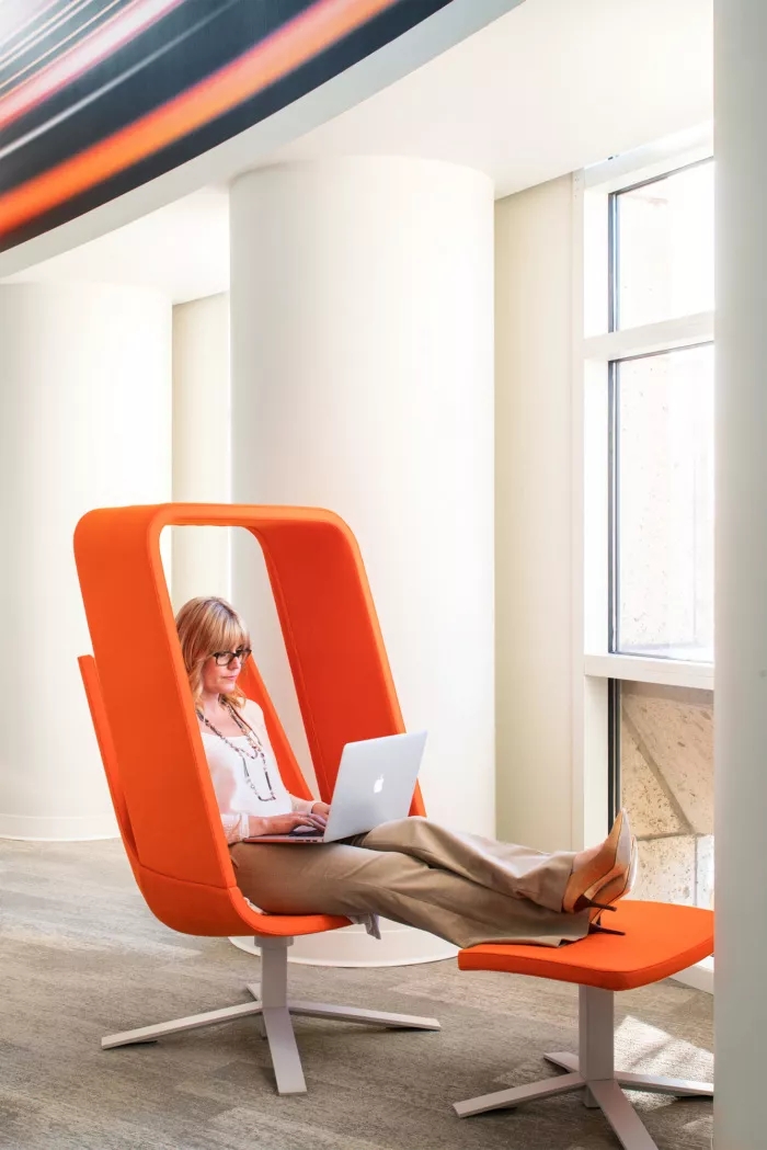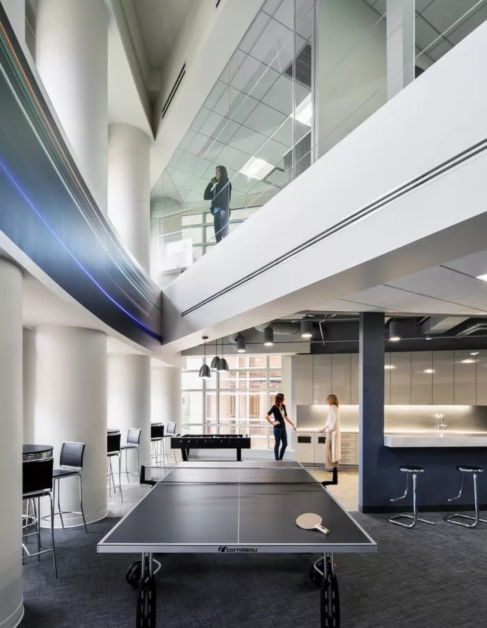 這里每一寸都為員工提供了一個(gè)支持他們成功的環(huán)境,依靠技術(shù)手段,打造鼓勵(lì)員工連接和溝通的氛圍。墻面白板、視頻會(huì)議室、各種空間和家具允許個(gè)人和團(tuán)隊(duì)在辦公室內(nèi)的完美位置進(jìn)行協(xié)作,當(dāng)然,如果想來(lái)一場(chǎng)即興的乒乓球比賽也未嘗不可。