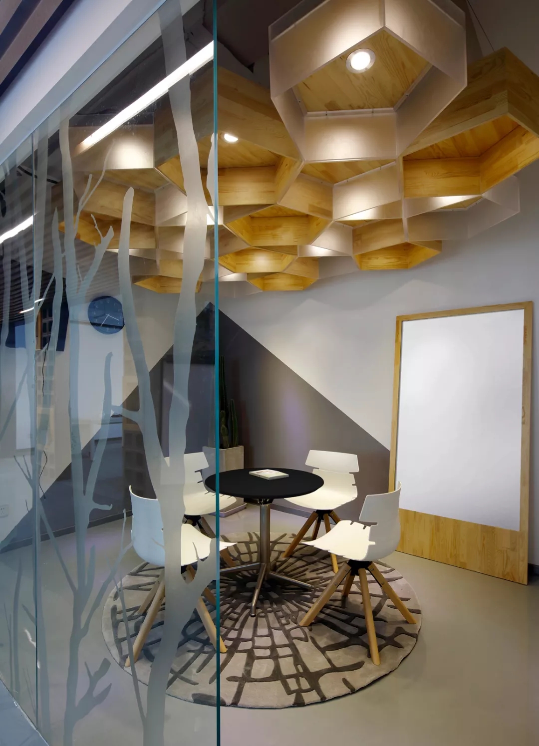 最新完成的整層辦公區(qū)延續(xù)了主體風(fēng)格,少了花俏的點(diǎn)綴,更多地使用色彩碰撞來(lái)提振精神,比如亮橙色開(kāi)放會(huì)議間與品牌VI的臟灰色搭配。也首次嘗試了全白色調(diào)的通透會(huì)議室,算是對(duì)極致風(fēng)格的小探索。