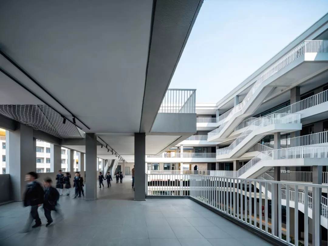 整個(gè)學(xué)校的概念策略、空間形態(tài)和場(chǎng)所定義描繪了一副全新生動(dòng)的體驗(yàn)式教學(xué)圖景,設(shè)計(jì)作為實(shí)現(xiàn)的媒介為義烏新世紀(jì)外國(guó)語(yǔ)學(xué)校的師生提供了更多的教育體驗(yàn)和可能性。而貫穿其中的設(shè)計(jì)聚焦點(diǎn):教育類(lèi)空間在城市高密度環(huán)境中的微妙立場(chǎng)、國(guó)際化教學(xué)體系與傳統(tǒng)國(guó)學(xué)文化兼容并重的有機(jī)教學(xué)空間建筑空間、面向未來(lái)的傳統(tǒng)空間體驗(yàn)營(yíng)造,也是飛速城市化進(jìn)程中的中國(guó)所普遍面臨的問(wèn)題,更是零壹城市一直以來(lái)并且會(huì)持續(xù)關(guān)注的高密度城市與教育空間問(wèn)題的研究點(diǎn)。