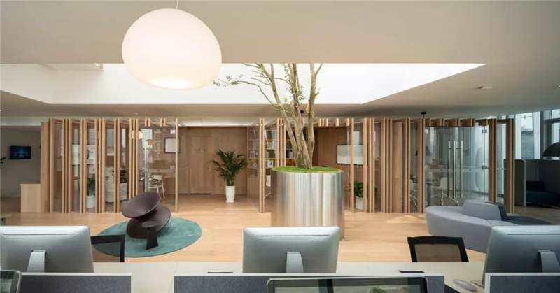 設(shè)計伊始,業(yè)主提出設(shè)計“具有未來感的新型辦公空間”的要求。“何為未來感”,在與業(yè)主的溝通協(xié)調(diào)時,我們的想法漸趨一致。“未來感”,并非是科技的新與酷,而是空間的設(shè)計——空間觸感的營造,生態(tài)與自由的氣息。