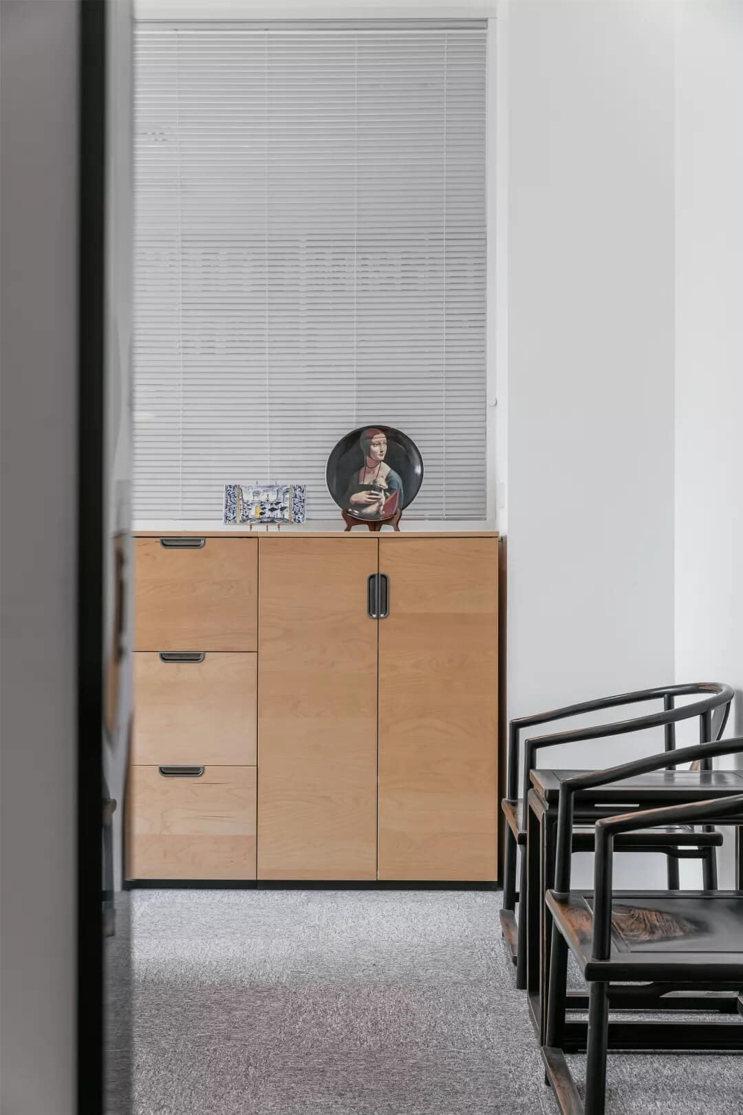 觸覺設(shè)計巧妙擷取文化于當(dāng)代都會空間,展現(xiàn)出雅致韻味的同時留下了更多觸碰的余地。綠植來點亮辦公場所的鮮活生命力,清逸的色彩是思想游龍的軌跡,在留白的空間中伸出觸角,觸覺所及之處,思維綻放遐想。