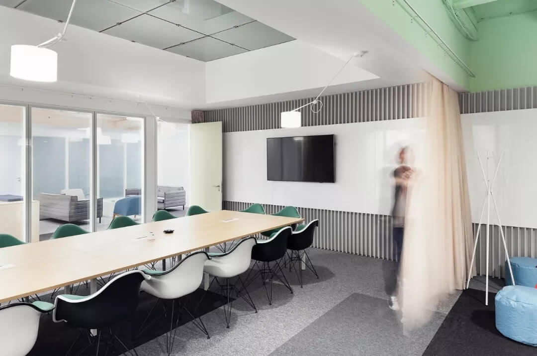 “位于保加利亞三層樓的新金融時報辦公樓,是首都索非亞最負盛名的地區(qū)。當Cache atelier的建筑師受委托設(shè)計FT的新創(chuàng)意空間時,他們想創(chuàng)造一個年輕的靈魂空間,但又不失平靜輕松的舒適感。