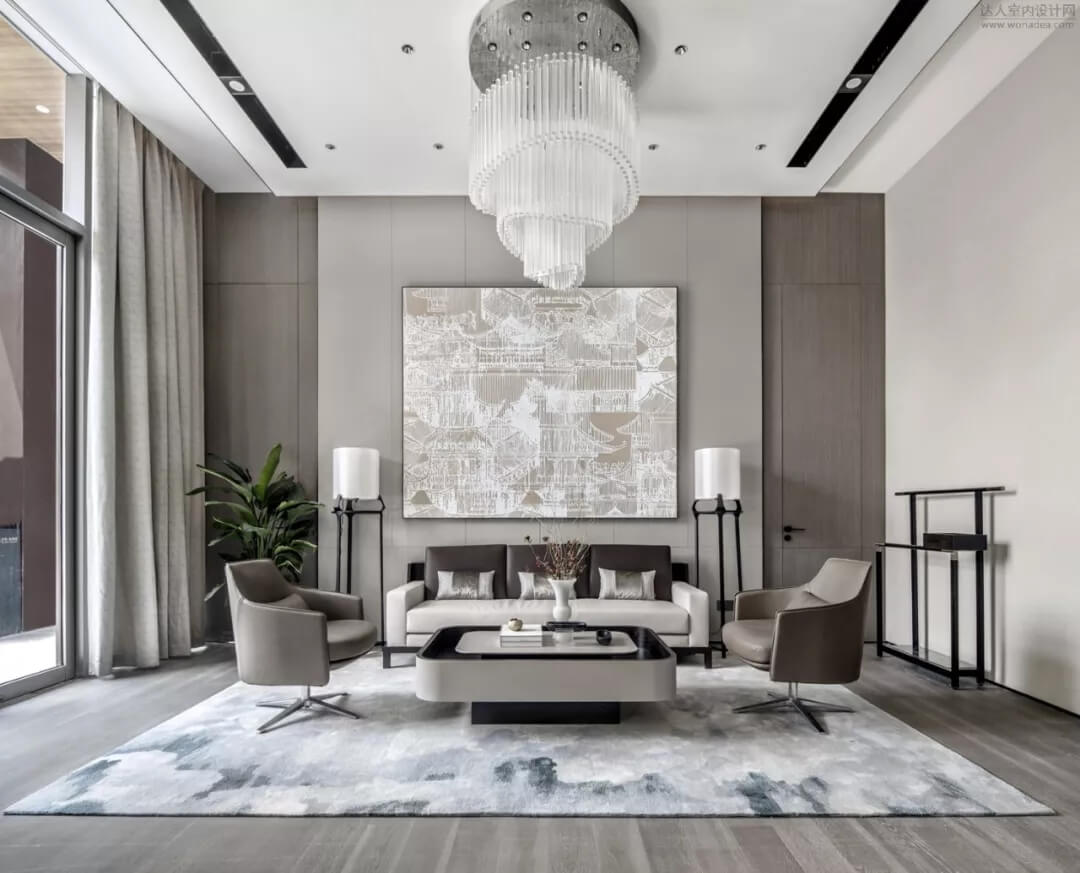 健身瑜伽、棋牌區(qū),作為高端小區(qū)的配套設(shè)施,也是體現(xiàn)了對(duì)客戶(hù)關(guān)懷,同時(shí)也是提升小區(qū)價(jià)值點(diǎn)的功能需求。在家居材料的選擇上采用高品質(zhì)工藝,當(dāng)代藝術(shù)品烘托氛圍,設(shè)計(jì)師用獨(dú)特的設(shè)計(jì)語(yǔ)言打造出延伸的空間意境。