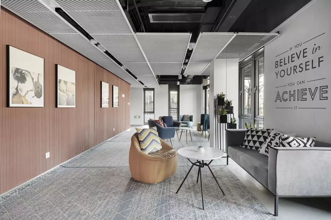 在空間劃分上,我們遵循城市綠色生態(tài)美學,充分利用創(chuàng)新技術進行模塊化設計,將裝配式建造、節(jié)能低碳等許多新理念應用到整個空間中去,將整體空間劃分成商務區(qū)、辦公區(qū)和休閑區(qū),具體到擁有獨立辦公室65個,辦公工位464個,會議室5個,以及水吧、咖啡廳、休息艙、茶室、電話亭等共享區(qū),我們想要脫離傳統辦公空間的單調枯燥,讓一站式的休閑服務和辦公完美結合,觸達現代人內心的深層需求,從而使整體設計方案在保持高品質的同時做到高效、低成本。