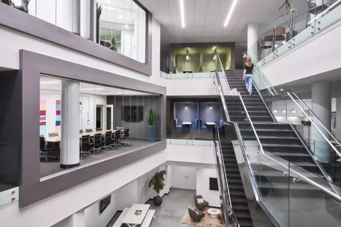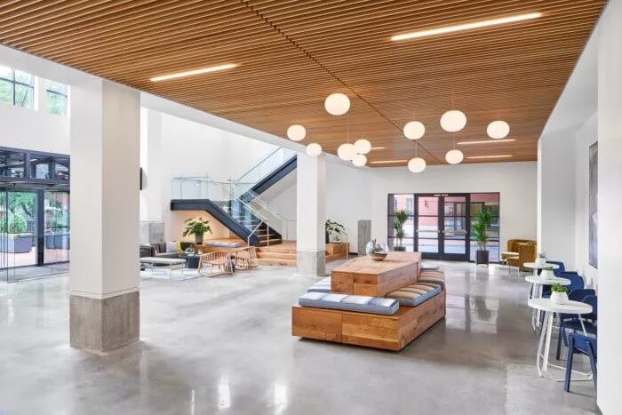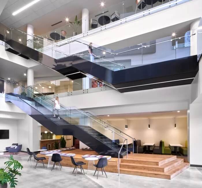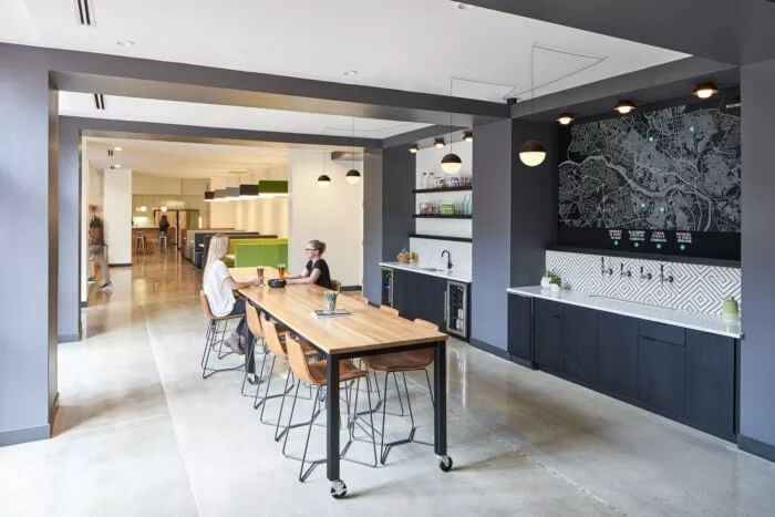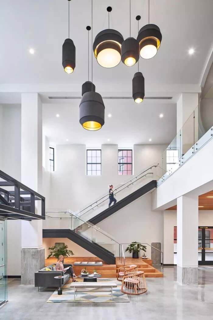 在整體美觀方面,3north剝離了裝飾性金屬制品,并將空間恢復(fù)為天然材料,干凈的線條和充足的自然光線。螺旋樓梯(一直是瓶頸交通的源頭)被拆除并簡(jiǎn)化了形式和材料調(diào)色板。拋光混凝土地板和裸露的天花板為經(jīng)典,現(xiàn)代設(shè)計(jì)做出了貢獻(xiàn)。在整個(gè)過程中,該建筑向后退一步,將焦點(diǎn)放在本地藝術(shù)和手工藝上。這是一個(gè)為員工本人打造的空間,無論員工的工作方式,當(dāng)前的心情或聚會(huì)的方式如何,他們都可以高效地工作,而且最重要的是可以激發(fā)靈感。