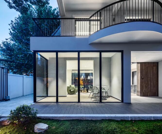 建筑上保留其原北美風(fēng)格的同時,植入現(xiàn)代化語言,拆除所有建筑裝飾面,重新選材及搭配,追求簡化,同時精心雕塑園林打造詩意生活情境,使建筑和風(fēng)景高度融合。景觀美學(xué)方面,優(yōu)雅的東方園林搭配西式別墅,以現(xiàn)代眼光勾勒傳統(tǒng)文化魅力,賦予空間更多的力量。