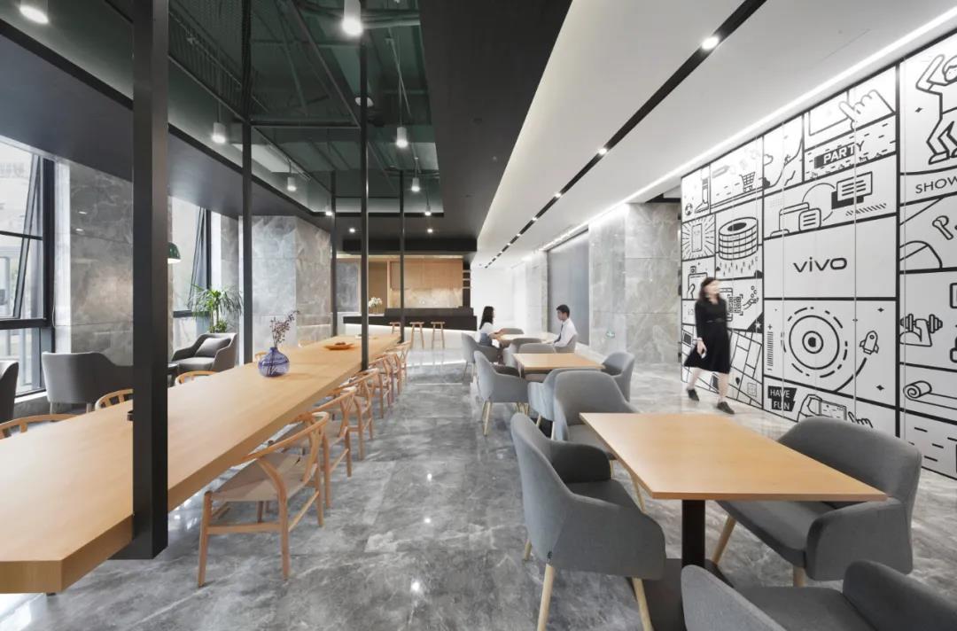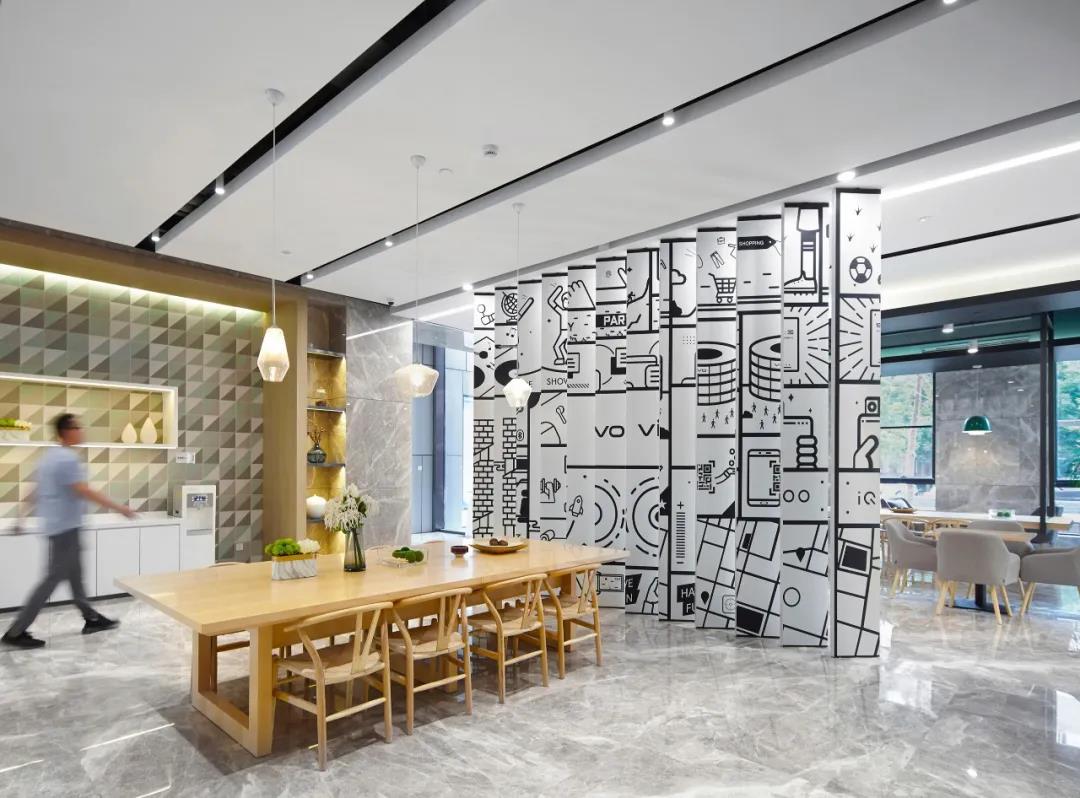 vivo倡導(dǎo)健康的生活方式。飲食,運(yùn)動,綠色環(huán)保的理念融入本案設(shè)計(jì)中,引導(dǎo)員工健康的行為習(xí)慣。