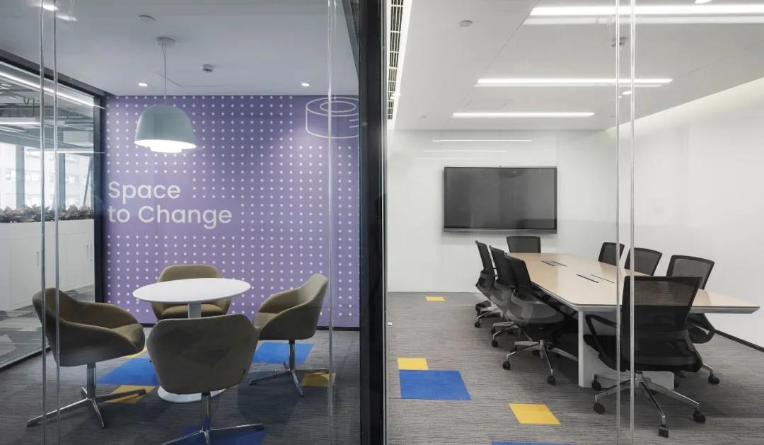 采用低飽和度的幾何圖樣壁紙,將vivo工業(yè)園,東莞總部,重慶vivo的建筑外形提煉出元素與洽談室巧妙結(jié)合,增強(qiáng)vivo的空間專屬性和親切性。