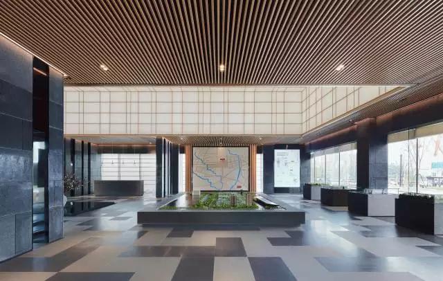 步入大廳,通過“借景”手法,將頗具詩(shī)情畫意的東方園林之景鋪呈在眼前,一抹翠綠更是讓整個(gè)空間靈動(dòng)起來,巧妙而又極具視覺沖擊。在陽(yáng)光照射下,投影又成為景觀的一部分,展示出自然與建筑的互動(dòng),活躍且適宜。一大排落地窗串聯(lián)起室內(nèi)外關(guān)系,正是光線的引入,讓建筑、景觀、室內(nèi)形成有序的一體。沿著預(yù)接待吧臺(tái)的動(dòng)線向前穿引,便是整個(gè)銷控區(qū)域。