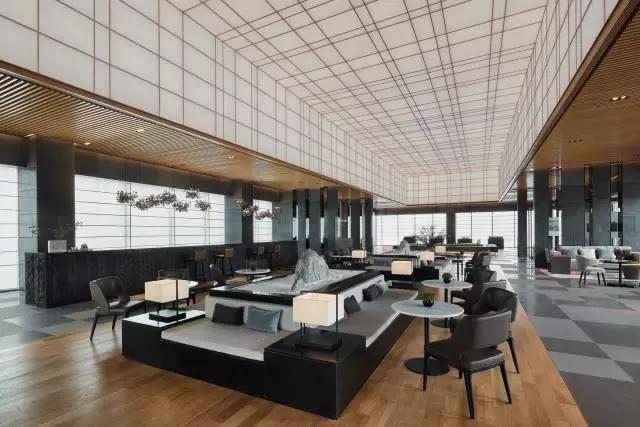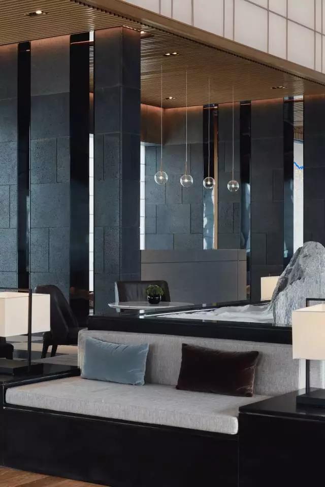 借由東方園林式的假山,打造出“未若柳絮因風(fēng)起”的雪景,美如水墨畫、細(xì)膩至極。這與圍繞式洽談方式布置相結(jié)合,巧妙處理好空間形態(tài)和陳設(shè)之間的關(guān)系。大尺度挑高設(shè)計(jì),加上頂部有序交互的線條,讓空間極具延展性,通透敞亮的照明效果搭配藝術(shù)性燈光點(diǎn)綴,使整體氛圍更顯大氣與品位。該空間通過主體、功能位置、通透的序列式的立面關(guān)系,自然分割空間視線,同時(shí)又實(shí)現(xiàn)了將光線引入到室內(nèi)的最大化。