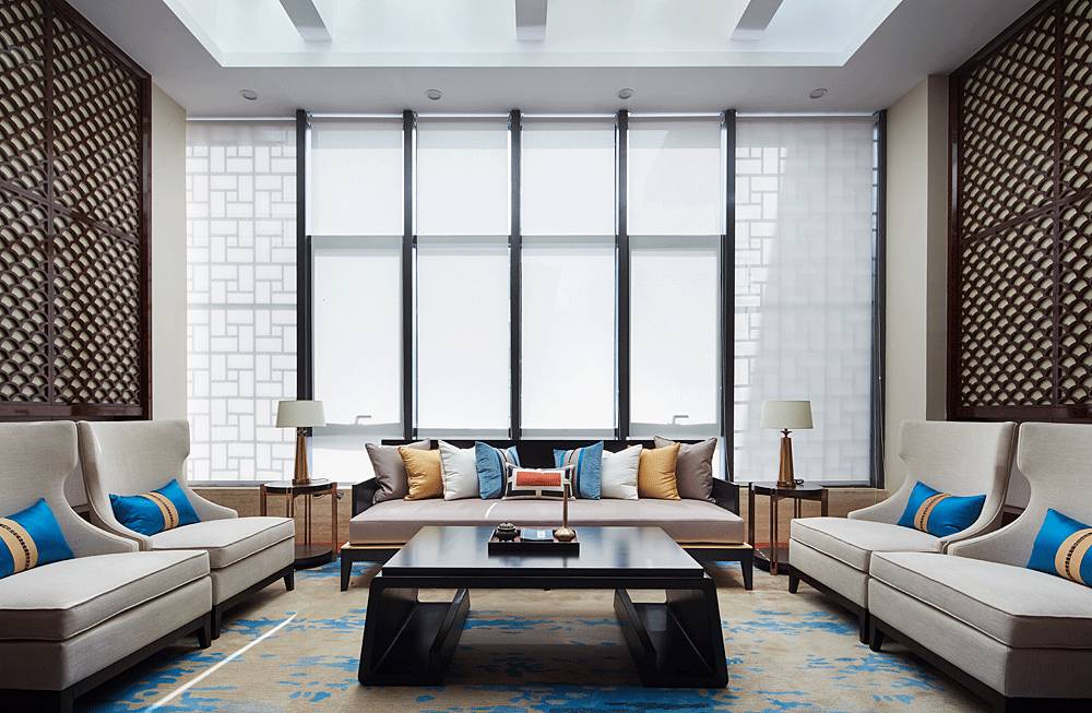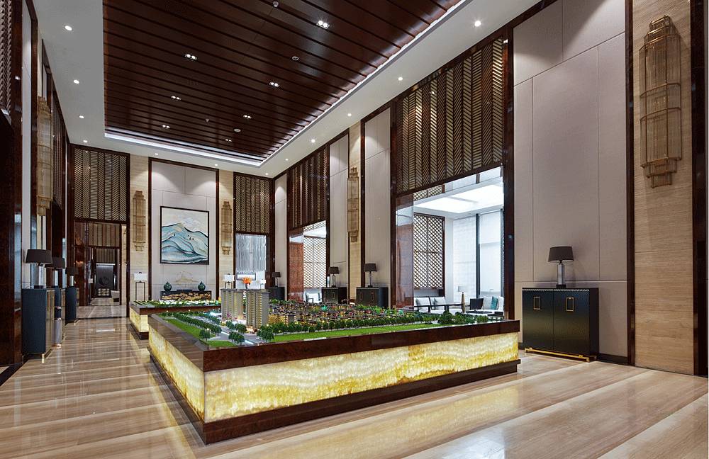 沙盤區(qū)采用簡單、大氣的設(shè)計手法,沒有濃墨重彩的奢華場景,更多的是將歷史古都的韻味帶到細(xì)節(jié)中,如格柵、窗欞、黛青色擺件、意境掛畫等東方元素都透露著古韻,并融入大理石、玻璃、燈帶等現(xiàn)代材料,在營造意境的同時兼顧場所的使用功能。