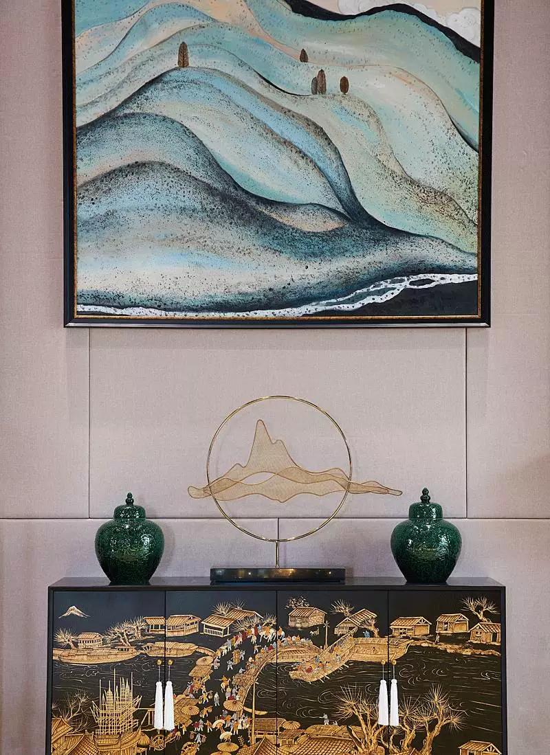 “湖光山色”項目位于西安歷史遺址觀光帶上,毗鄰鎬京遺址公園與斗門水庫,四周環(huán)境怡然靜雅,歷史文化氣息濃厚,近期其營銷中心已完工,軟裝設(shè)計交由深圳印象空間呈現(xiàn)。結(jié)合周圍環(huán)境及甲方需求,印象空間最終將西安古都情懷融于作品中,于細(xì)微之處傳遞意境之美。